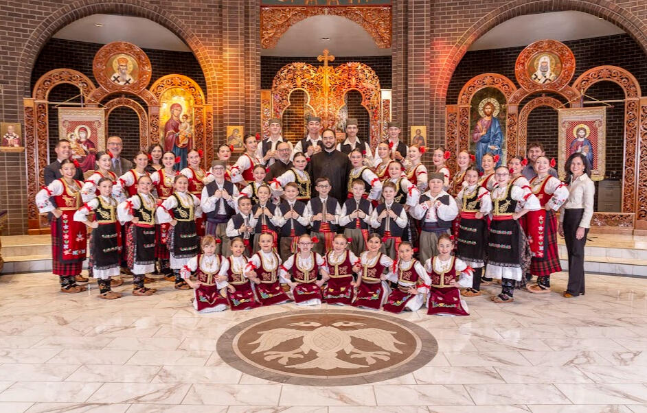 Row 4: Madison Dougherty, Christine Guskiewicz, Vesna Lazić, Sofija Bulatović, Caitlin Kosanovich, Marissa Trklja, Daniela Radulovich, Deacon Mark Matejevich, Mara Radulovich, Shea Williamson, Sophia Malich, Sara Bajich, Milana Winowich, Natasha Sudol
